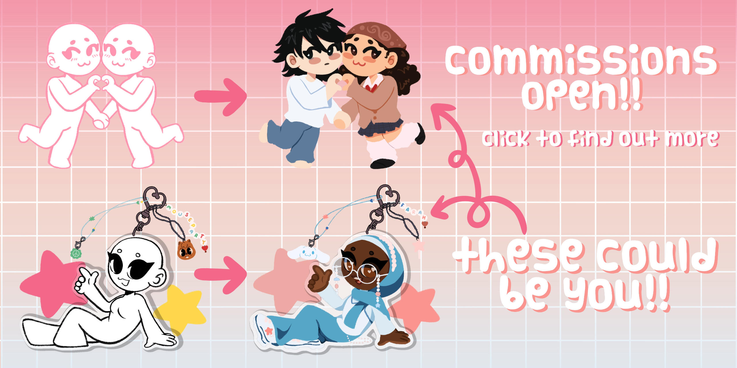 my commissions are currently closed and will reopen at a later date~all updates regarding that on my socials!!